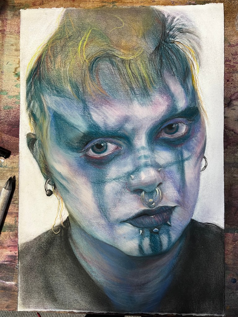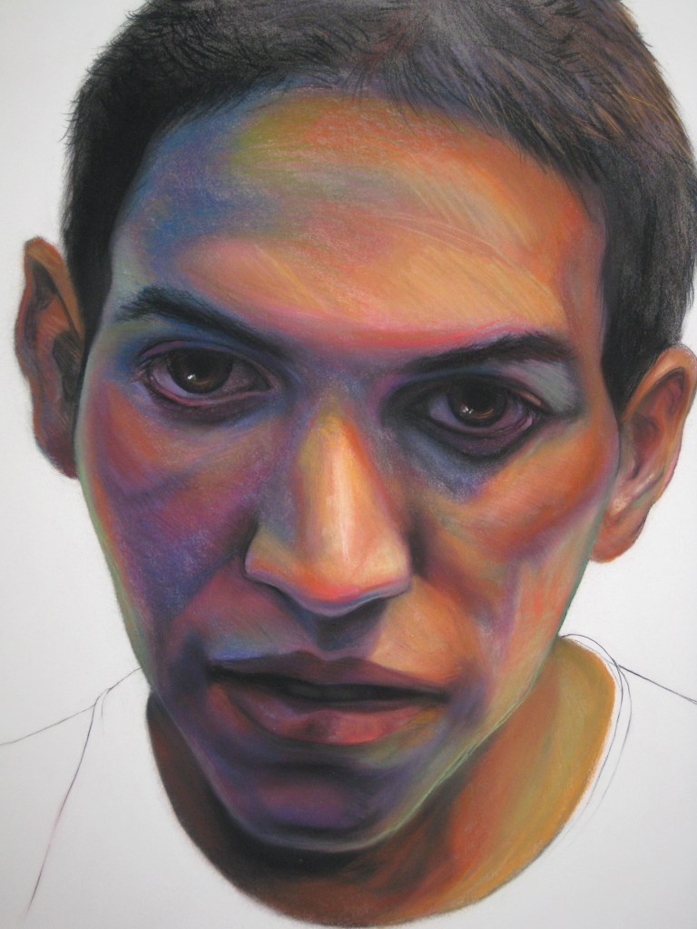 This section of portraits are on BFK paper and done in soft pastels. The size is mostly 31″ x 22″.