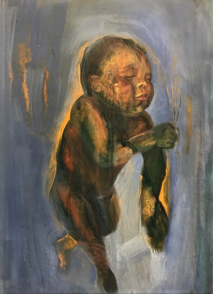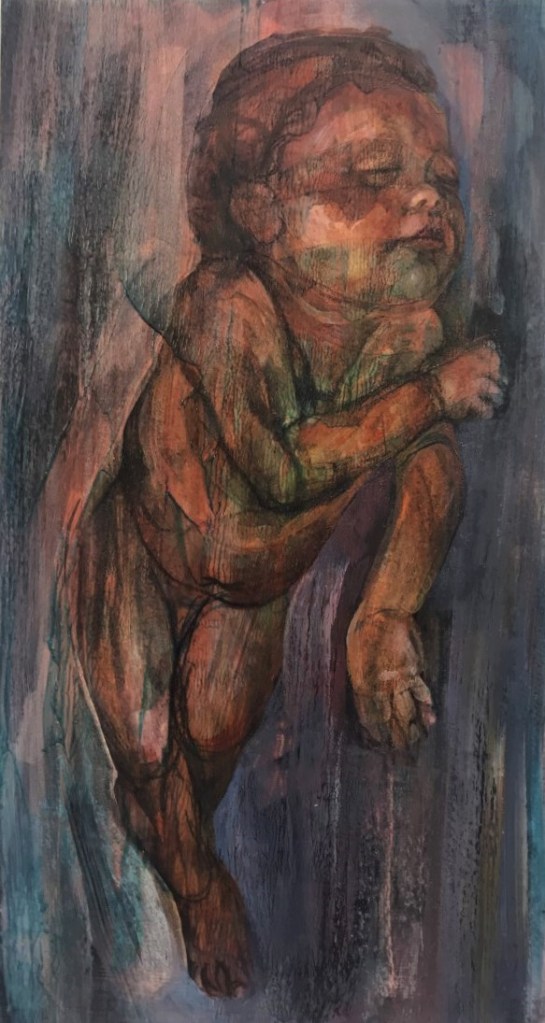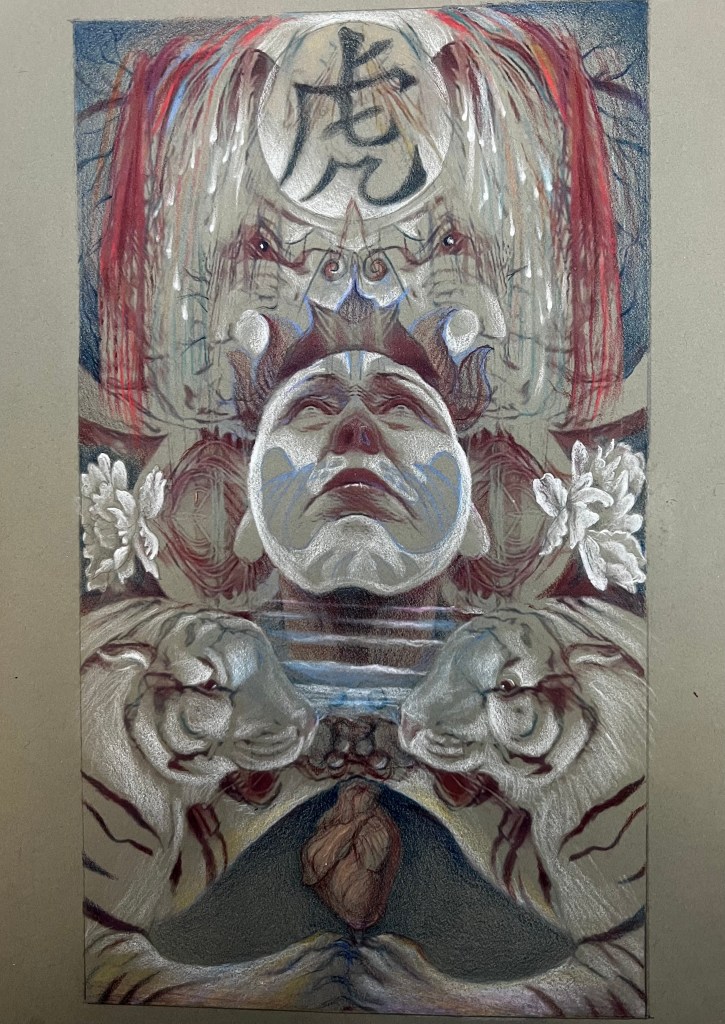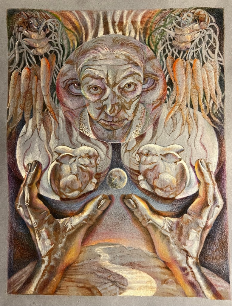 Rooster Meets Abandoned Peel Colored Pencil on Canson 2022